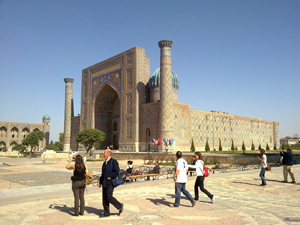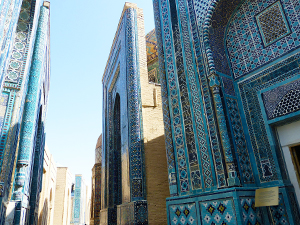 中世紀建築寶典,皇冠華美底座-『 2000 年 UNESCO 收錄世界文化遺產』沙赫里薩布茲(Shakhrisyabz)古城,是中亞霸主─帖木兒的故鄉,城裡所有建築和街道都以他為名。他不只在此生長成年,也是他的父親、精神軍師和他最大兩個兒子的陵墓所在,甚至在此建造自己的地下陵寢,相信從此可榮登阿拉的寶座,沙城因此成為中世紀陵墓最多的城市之一。